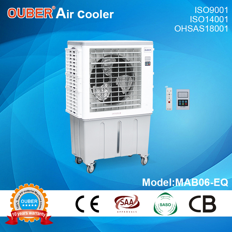 3 speeds / Electronic panel / 40L big water tank / aluminum alloy 3-blade fan / 100% new PP shell / Pure copper motor / Odor-free cooling pad / strong wind / energy saving / 5 meters Cable winding storage / 10-meter remote control / 1-8 hour Delayed Shutdown / quick pipe connect / Water-drop wind bar / Dust-proof filter / Swivel caster with brake / Stainless steel screws / Evaporation rate >92 % / UV germicidal lamp+Circulating water pump(optional)